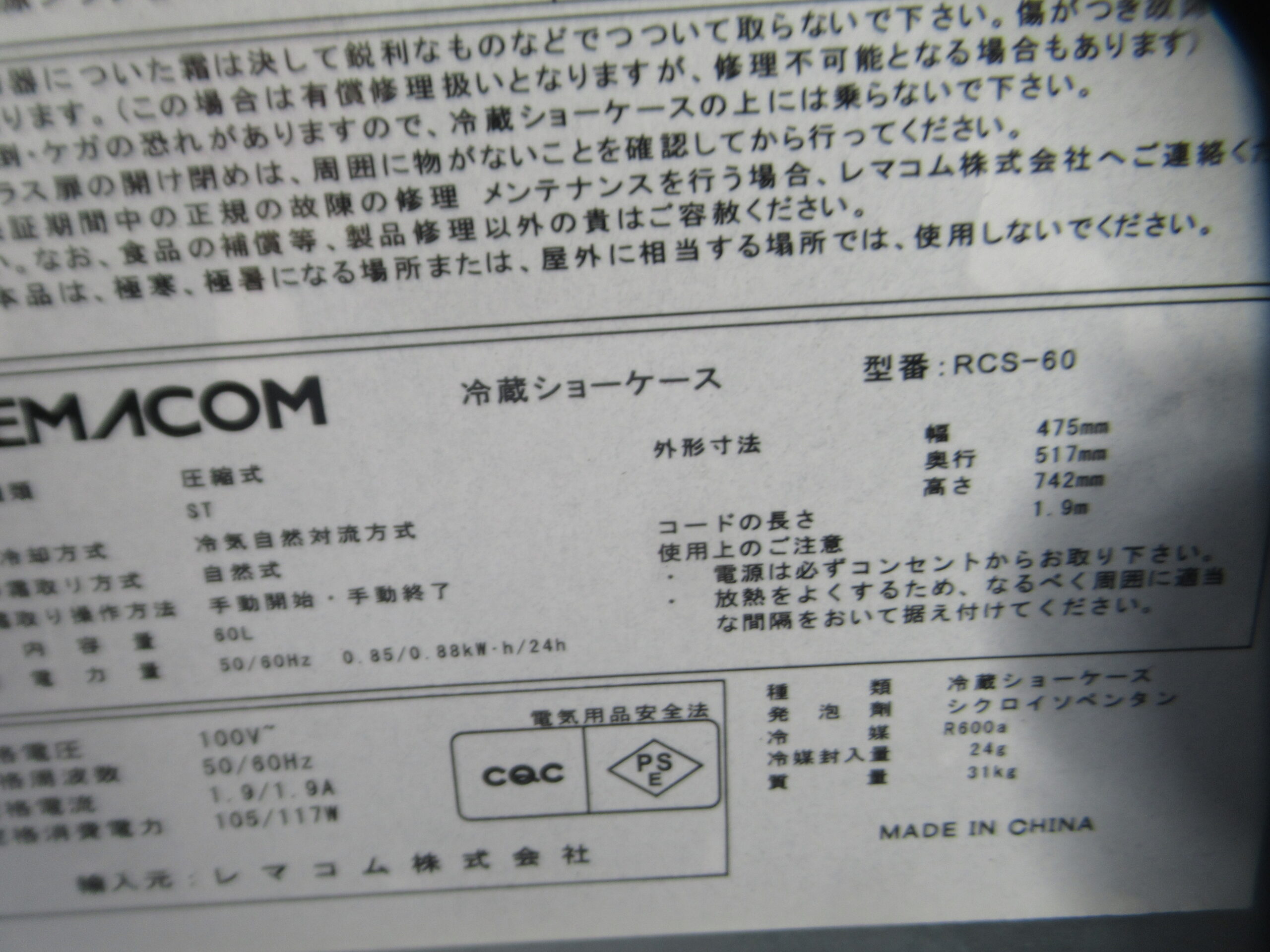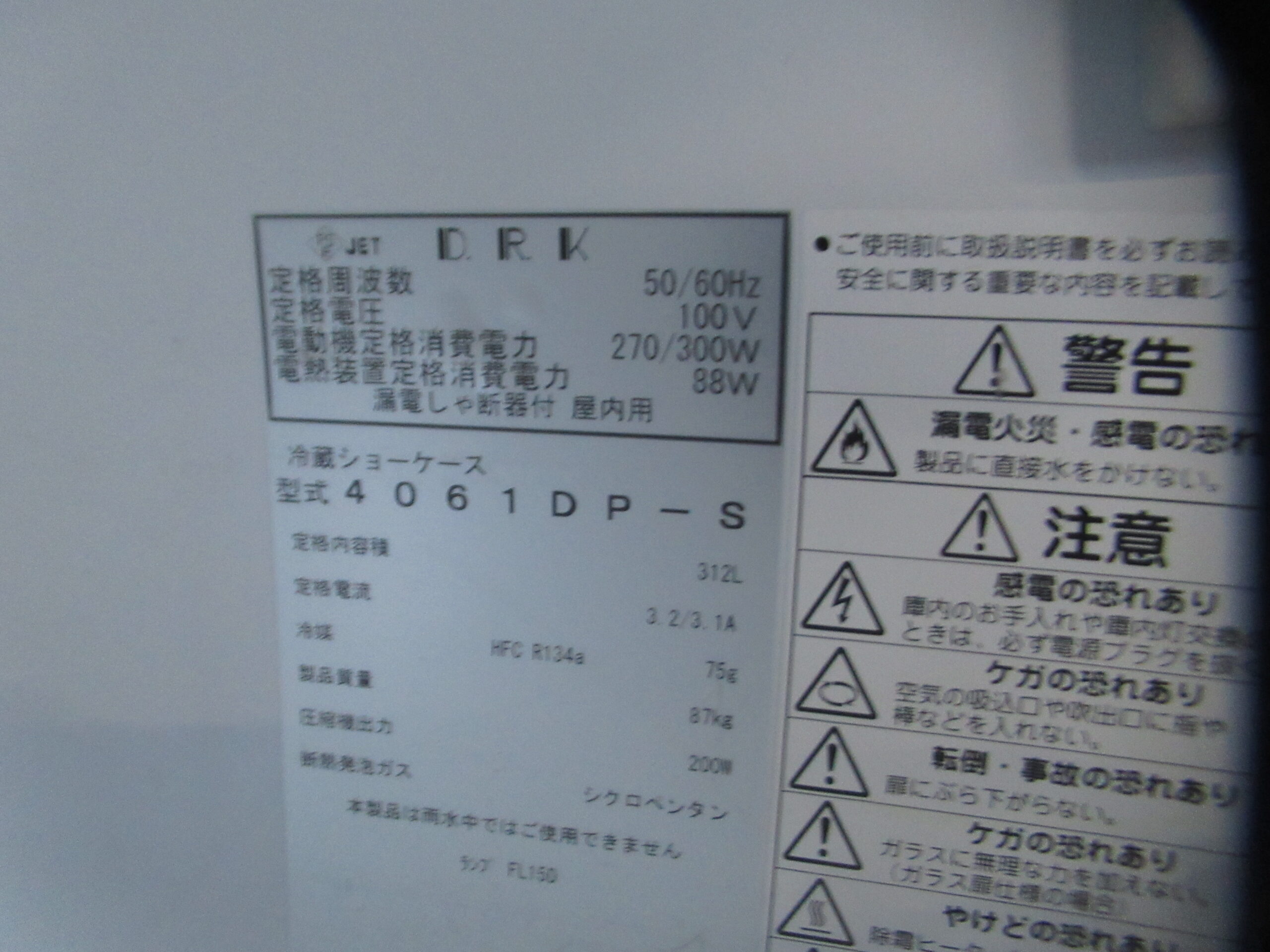 冷蔵ショーケース(ダイワ15製 312L)(サンデン 160L)(レマコム19製 60L)
