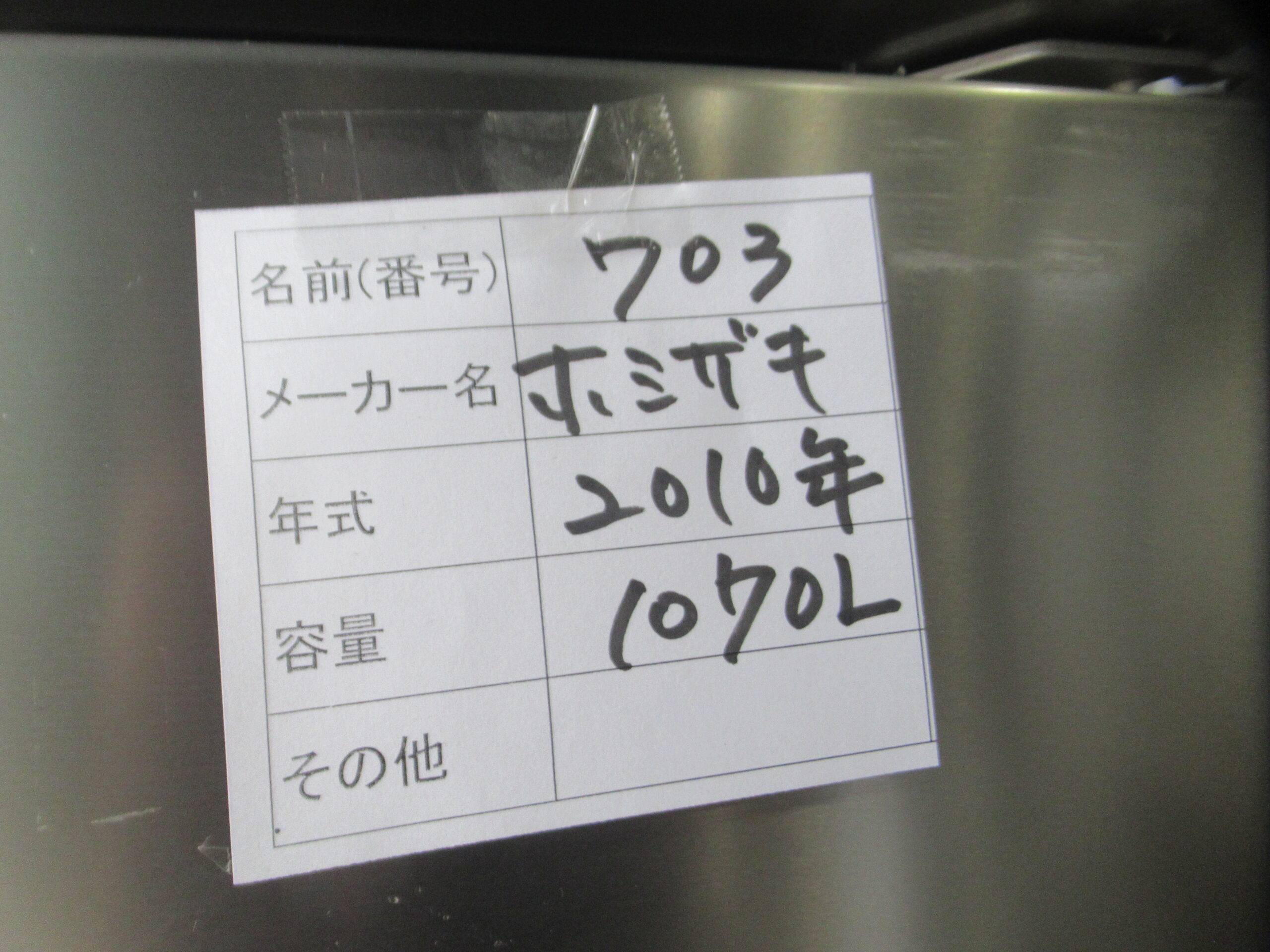 冷凍庫(ホシザキ10製 1070L)×2